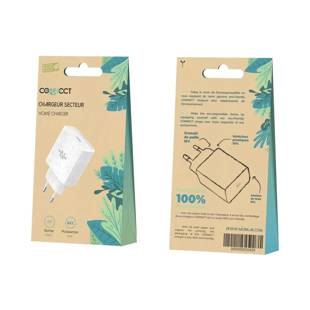 Les points forts du Chargeur Secteur Type-C CONNECT Biodégradable 20W :